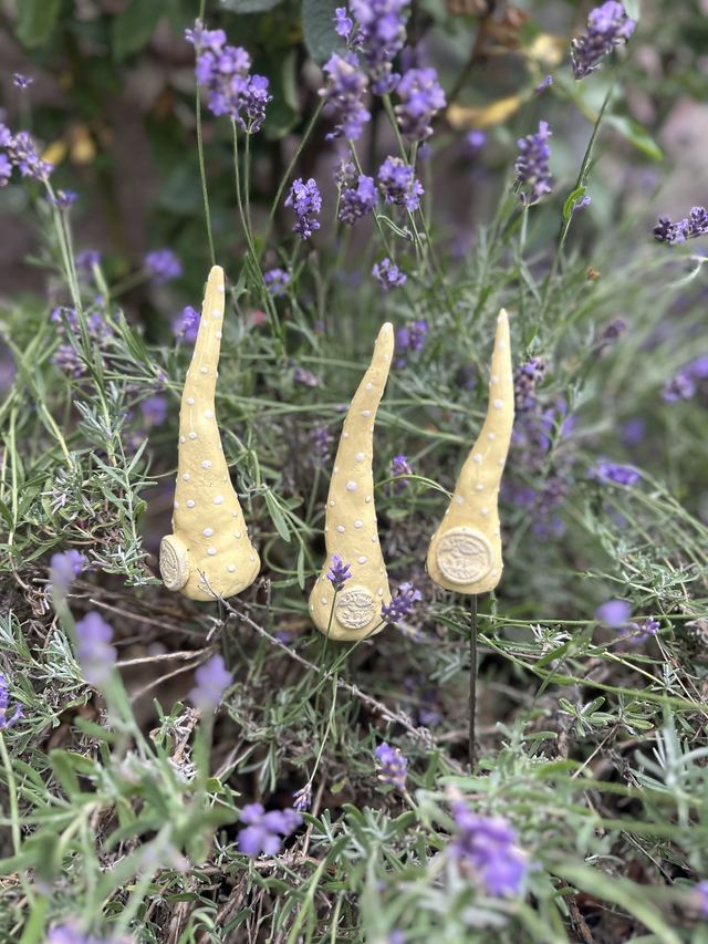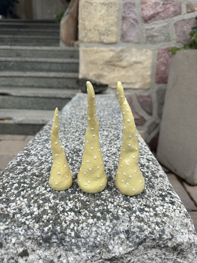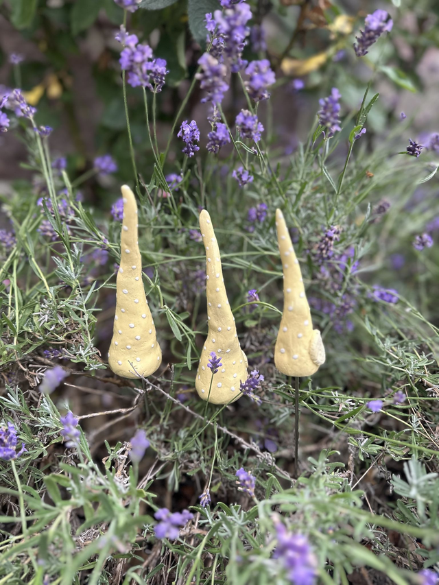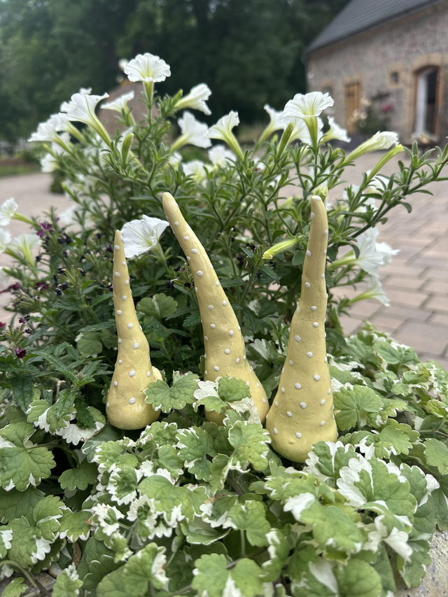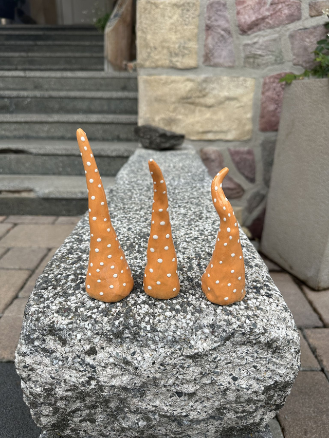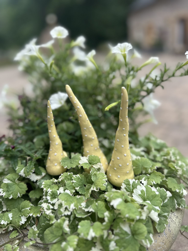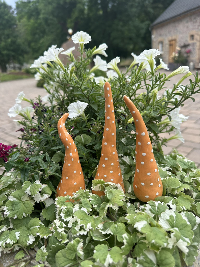 Dreierpack kleine Keramikzipfel im Fliegenpilz-Look! Perfekt für die Deko in Blumentöpfen und kleine Beeten. Dieses Trio verleiht deinen Pflanzen den ultimativen Style-Kick. Einfach auf einen Stab stecken oder direkt in die Erde setzen. In meinem Shop gibt's eine bunte Farbpalette!