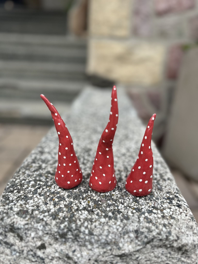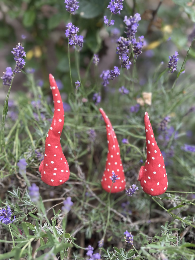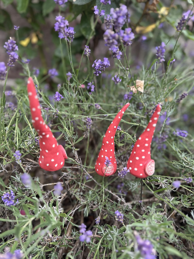 Dreierpack kleine Keramikzipfel im Fliegenpilz-Look! Perfekt für die Deko in Blumentöpfen und kleine Beeten. Dieses Trio verleiht deinen Pflanzen den ultimativen Style-Kick. Einfach auf einen Stab stecken oder direkt in die Erde setzen. In meinem Shop gibt's eine bunte Farbpalette!
