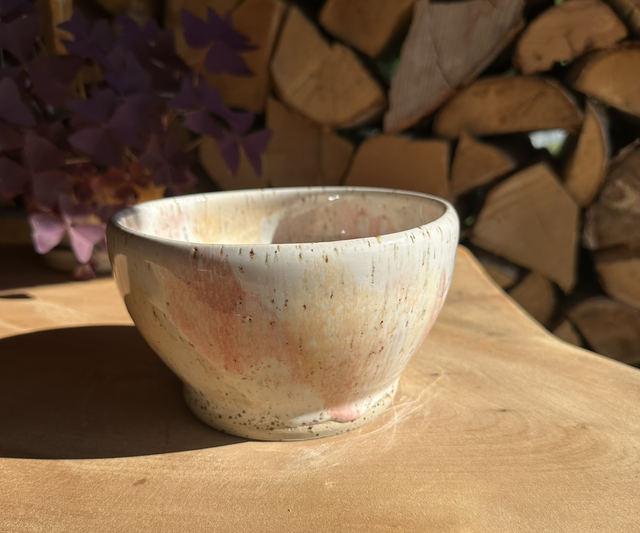 Diese handgefertigte Müslischale aus Keramik ist ein echtes Unikat. Mit ihrer natürlichen Glasur in warmen Cremeweiß- und Rosétönen eignet sie sich ideal für Müsli, Suppe, Salate oder Snacks. Jede Schale wird einzeln gefertigt und ist dadurch einzigartig – kleine Abweichungen in Farbe und Form machen ihren besonderen Charme aus.