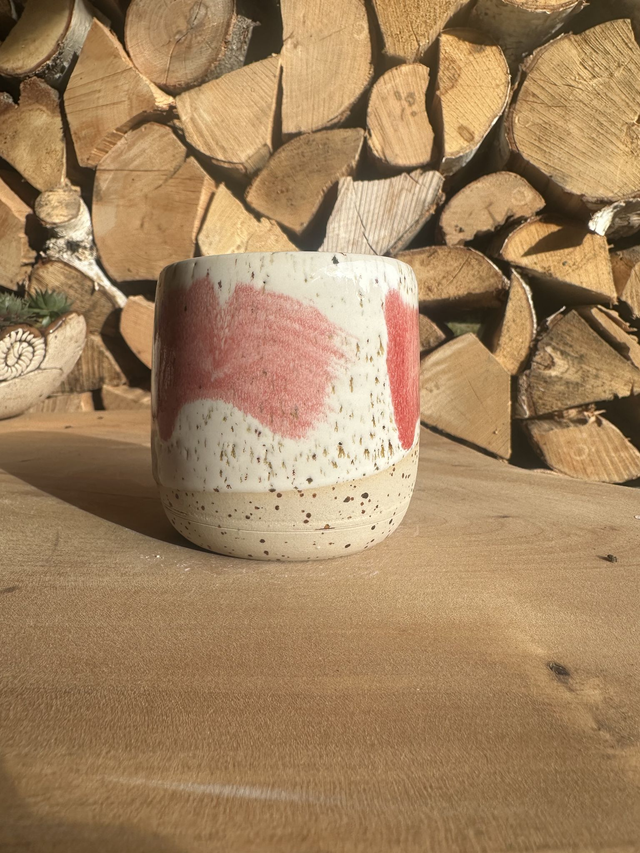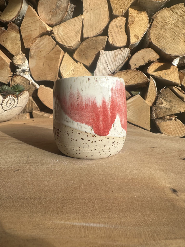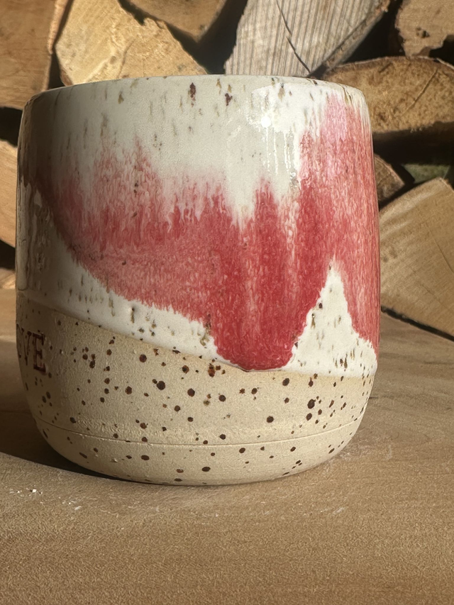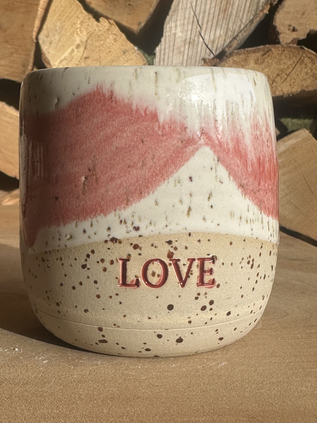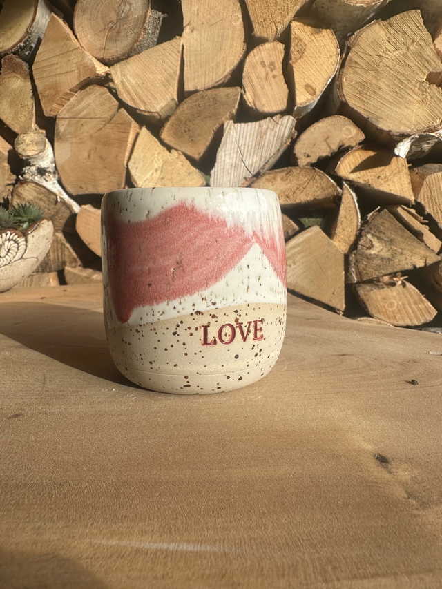 Ein handgefertigter Becher voller Liebe. Der Keramikbecher „LOVE“ wird mit Herzblut getöpfert und glasiert – jedes Stück ist ein Unikat. Die Kombination aus natürlichem Ton, rötlich-beiger Glasur und feinen Sprenkeln macht ihn zu einem besonderen Begleiter für deine Lieblingsmomente.