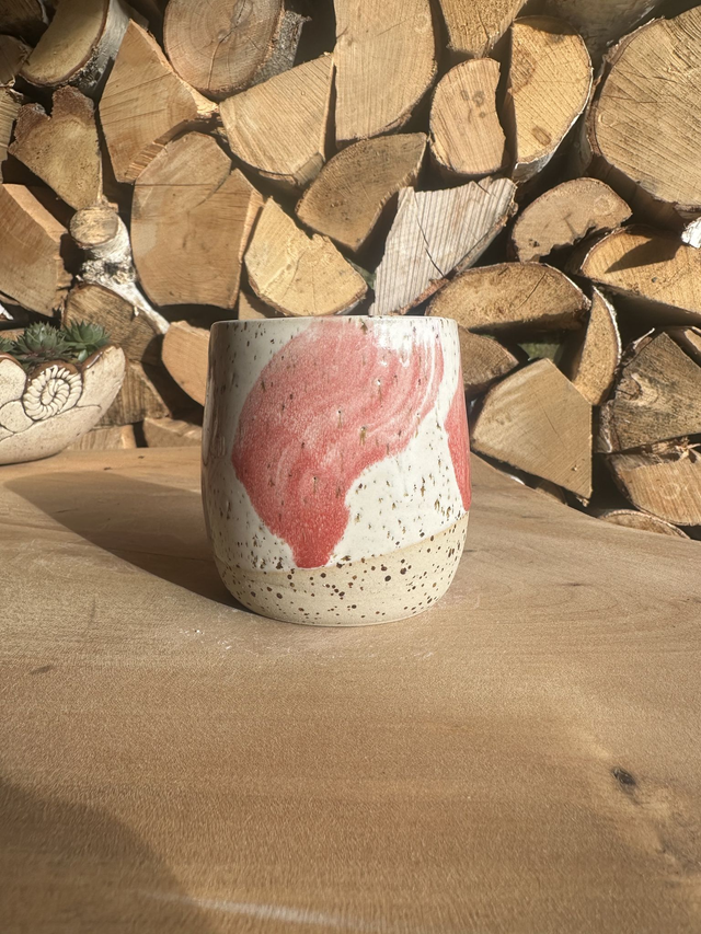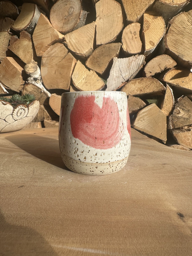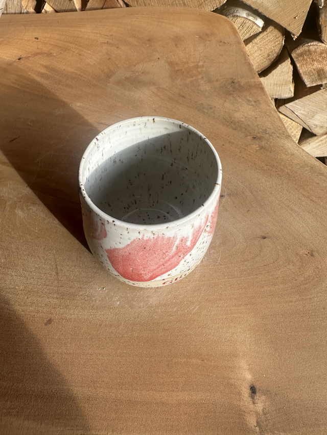Ein handgefertigter Becher voller Liebe. Der Keramikbecher „LOVE“ wird mit Herzblut getöpfert und glasiert – jedes Stück ist ein Unikat. Die Kombination aus natürlichem Ton, rötlich-beiger Glasur und feinen Sprenkeln macht ihn zu einem besonderen Begleiter für deine Lieblingsmomente.