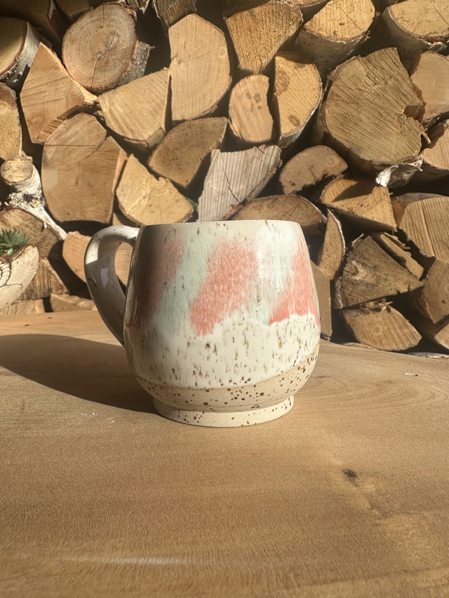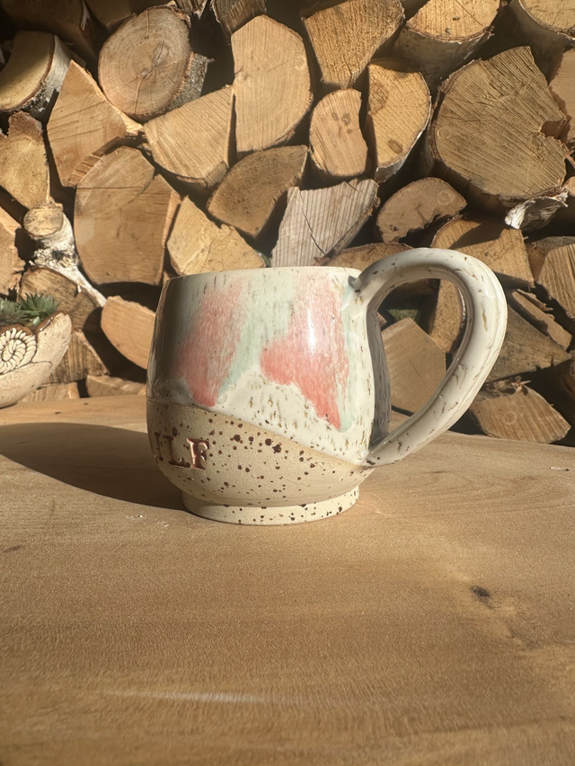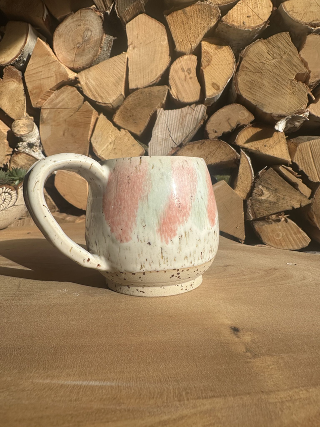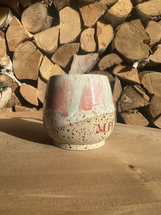 Der Keramikbecher „MILF“ überzeugt durch seine sanften Farbverläufe in Rosa, Mint & Creme – jedes Stück ist ein echtes Unikat.