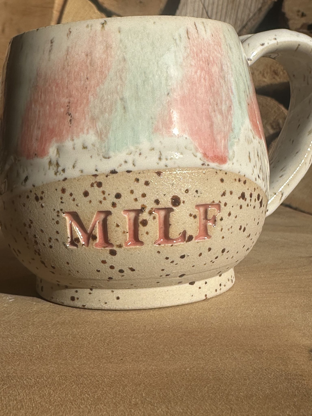 Keramikbecher „MILF“ – handgemacht & bunt glasiert