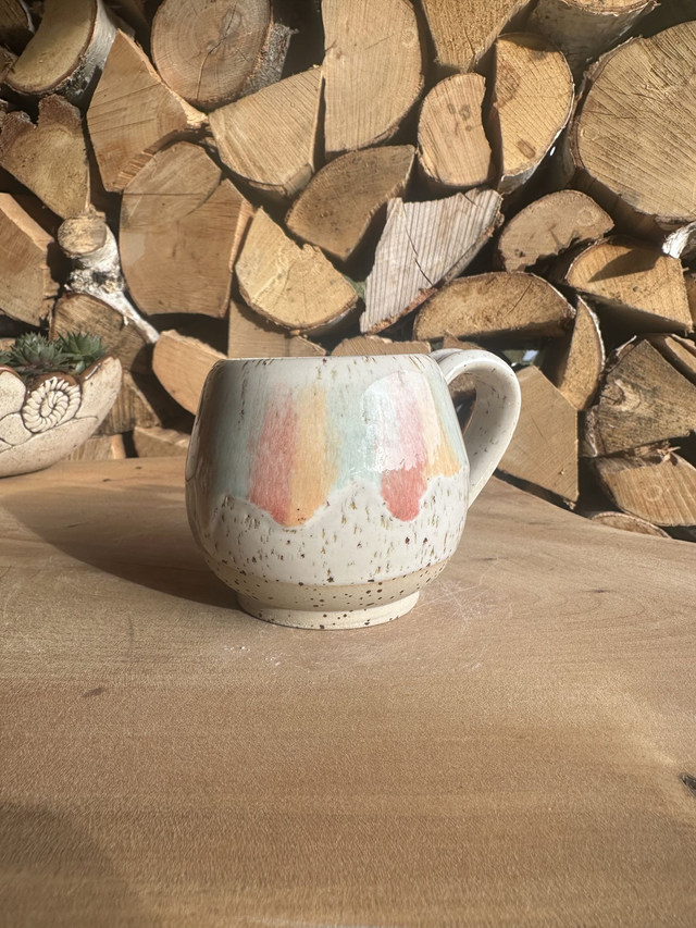 Die weichen Farbverläufe in Rosé, Mint und Creme verleihen ihm einen charmanten, modernen Look. Perfekt als Geschenk mit Witz oder für deinen eigenen Kaffeegenuss.