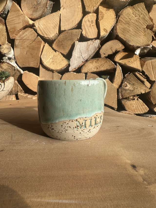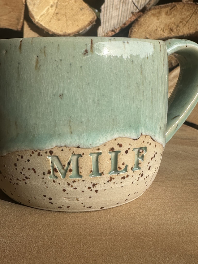 Der Keramikbecher „MILF“ kombiniert natürliche Farbgebung mit modernem Design.