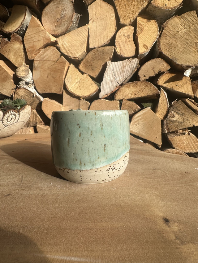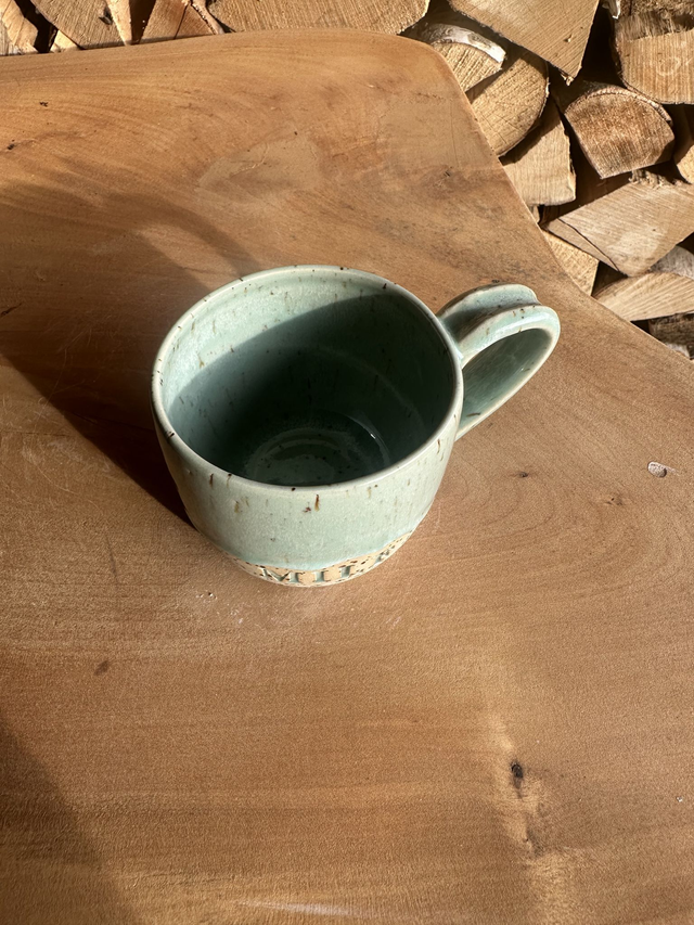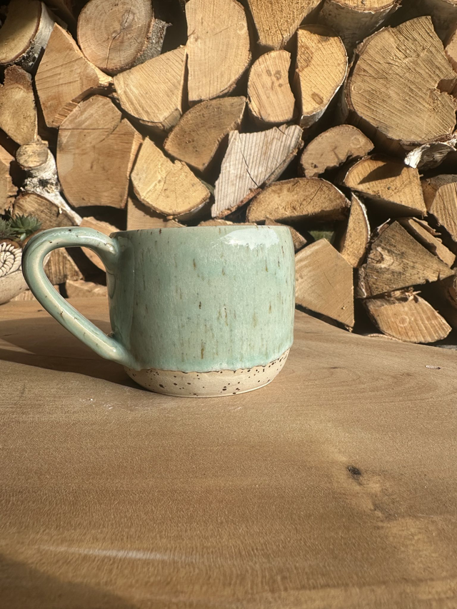 Die mintgrüne Glasur harmoniert perfekt mit dem gesprenkelten Naturton. Ideal als Geschenk oder für den eigenen Lieblingskaffee.
