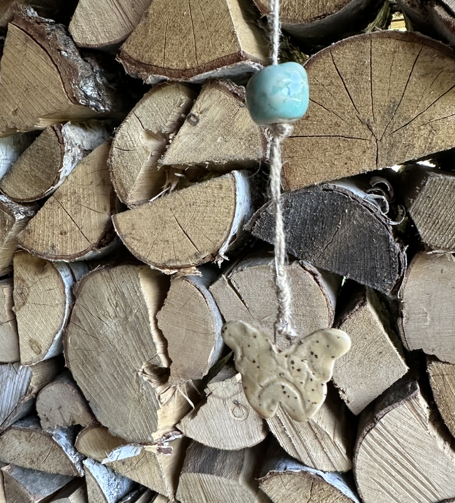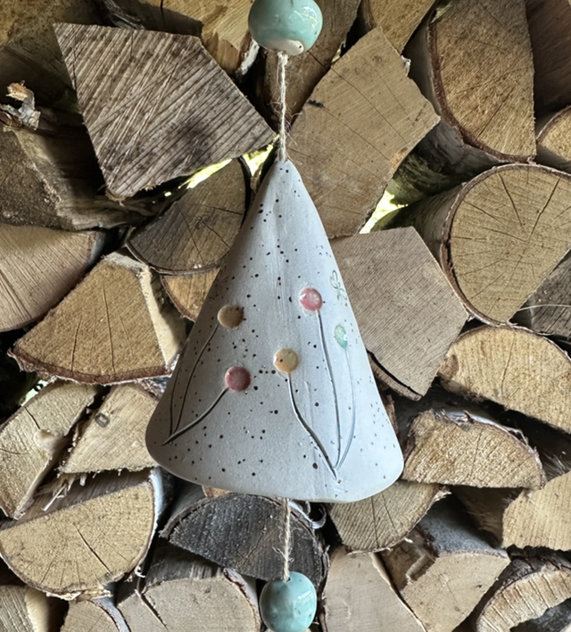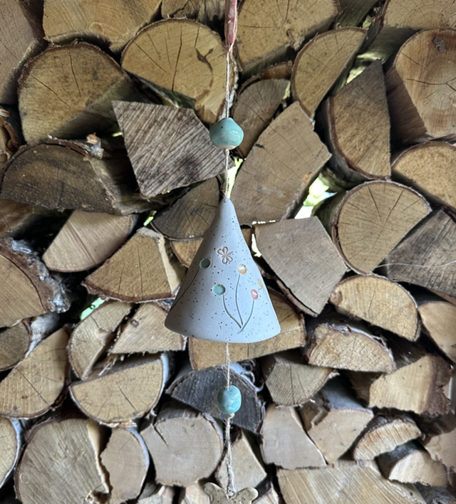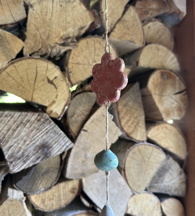 Schönes Keramikglöckchen, als Windspiel in fröhlichen Farben.